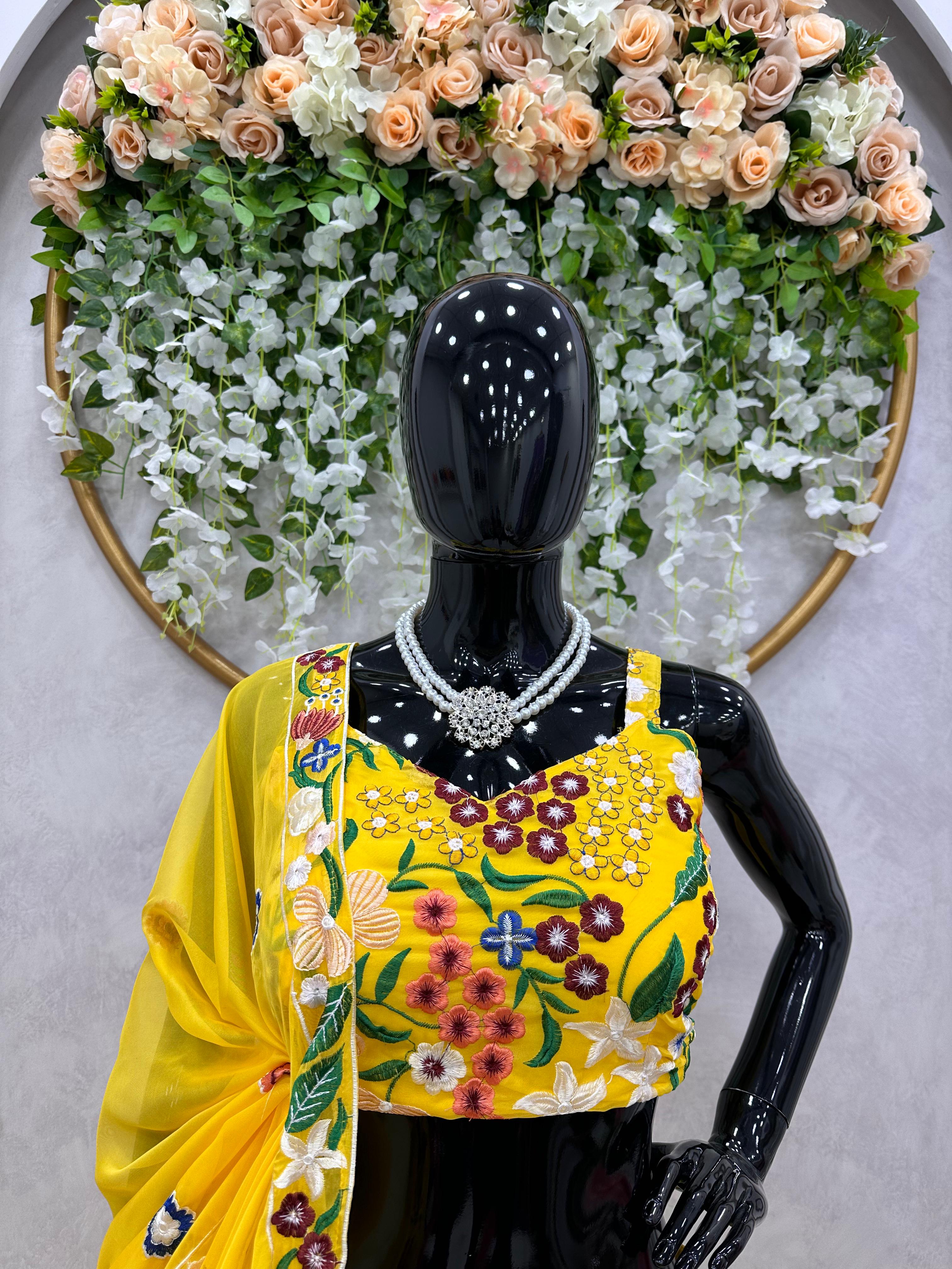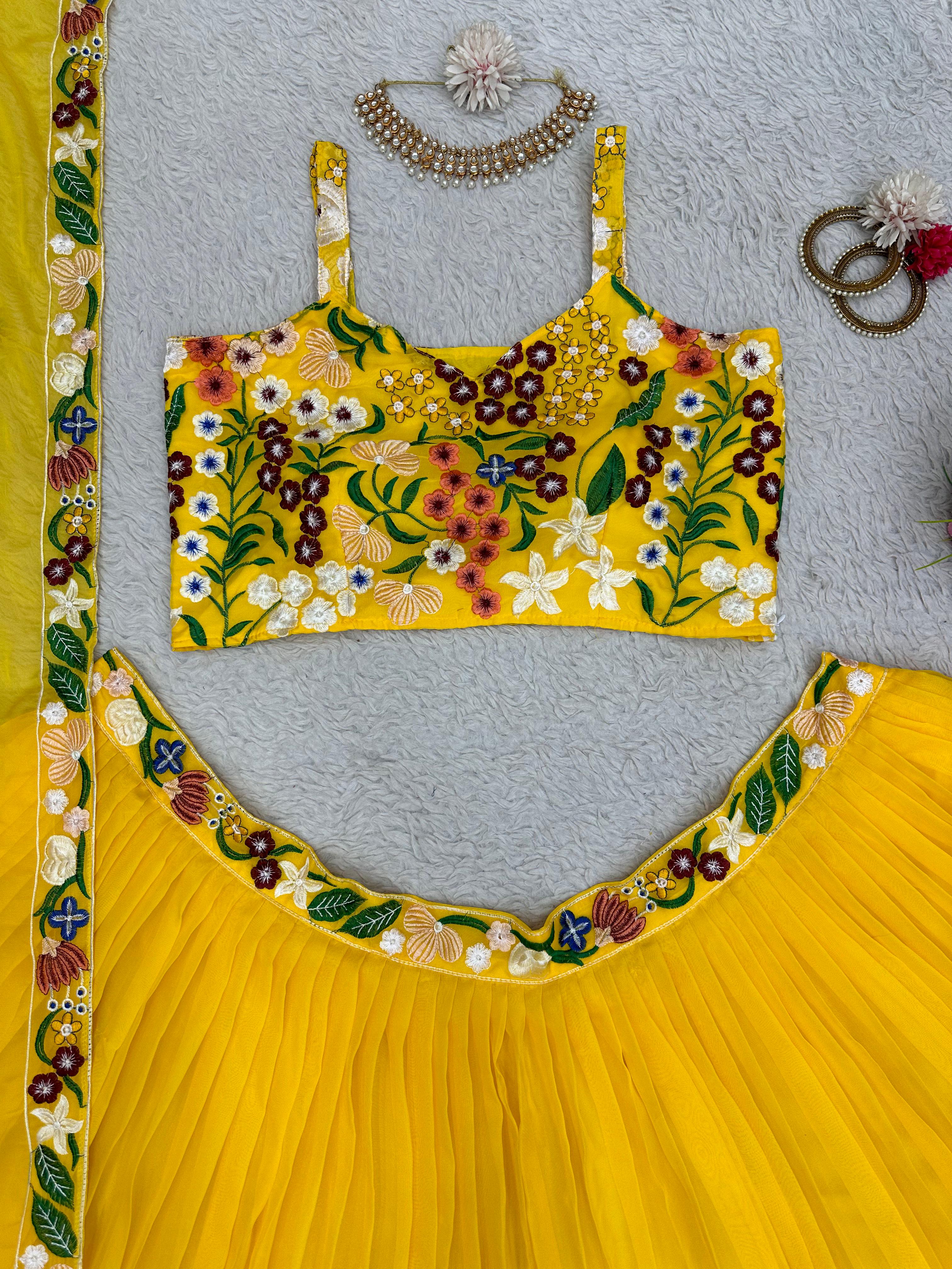 Buy Now the Latest Yellow Thread Embroidery Lehenga Choli