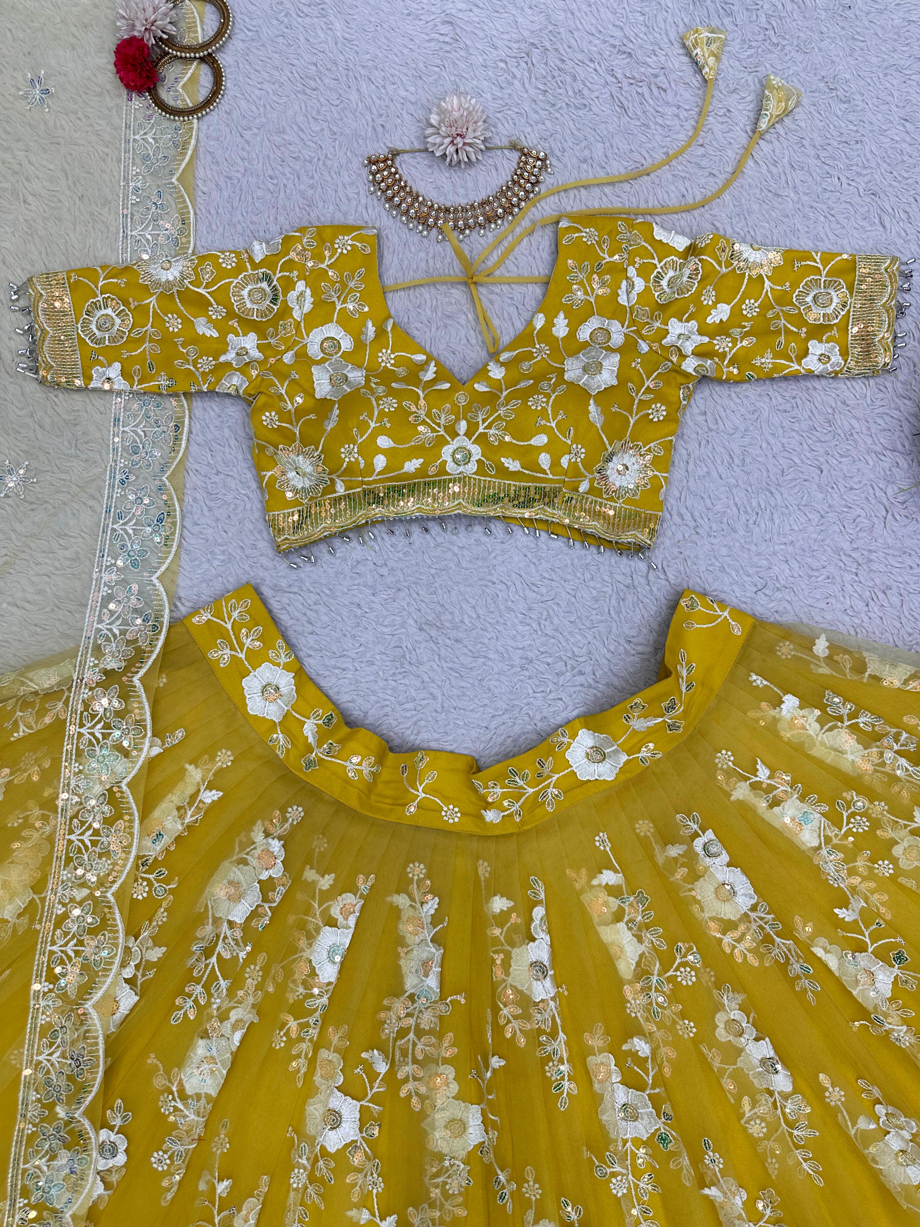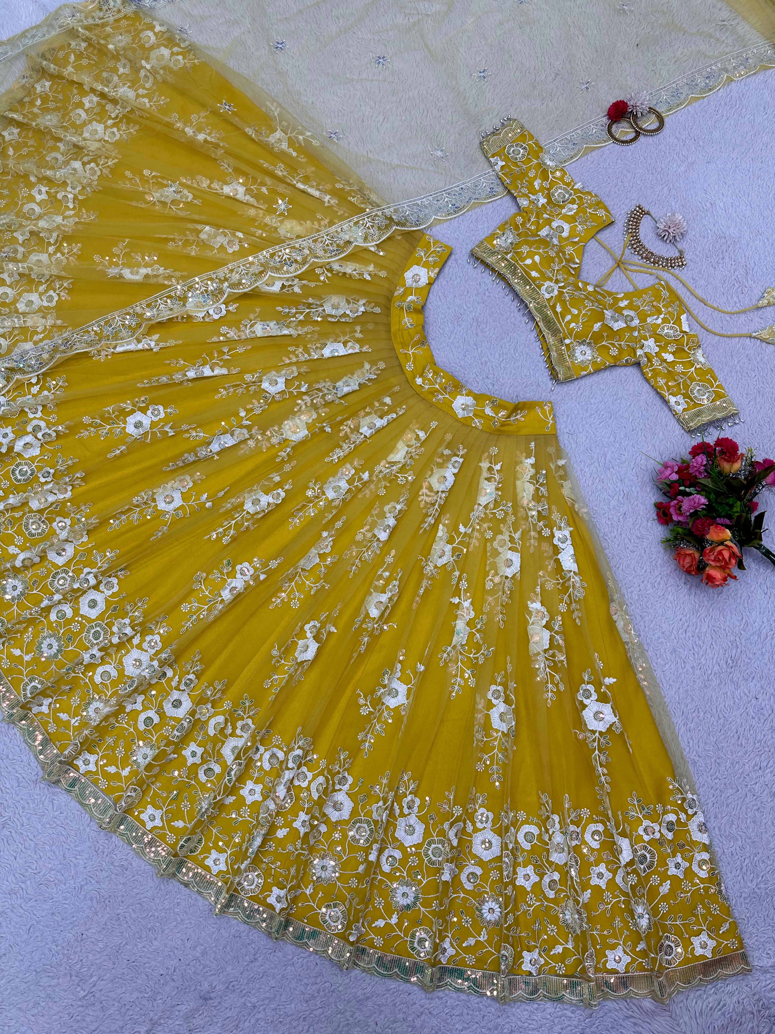 Amazing Soft Net Fabric Sequins Work Lehenga Choli For Women
