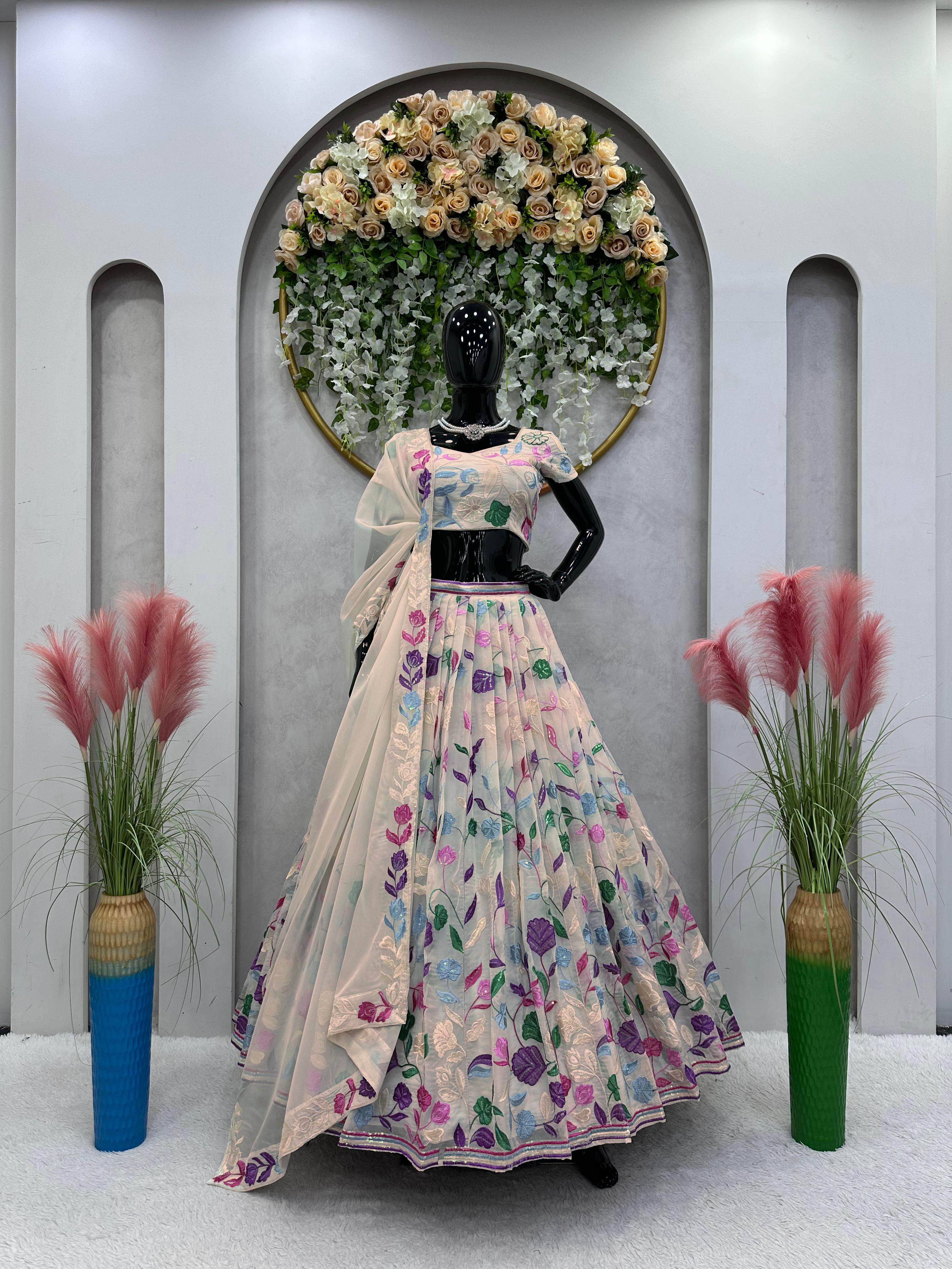 Shop Cream Color Lehenga Online at the Best Price on Joshindia. Dazzle the crowd in this elegant cream lehenga. Buy now for a glamorous look at a great price.