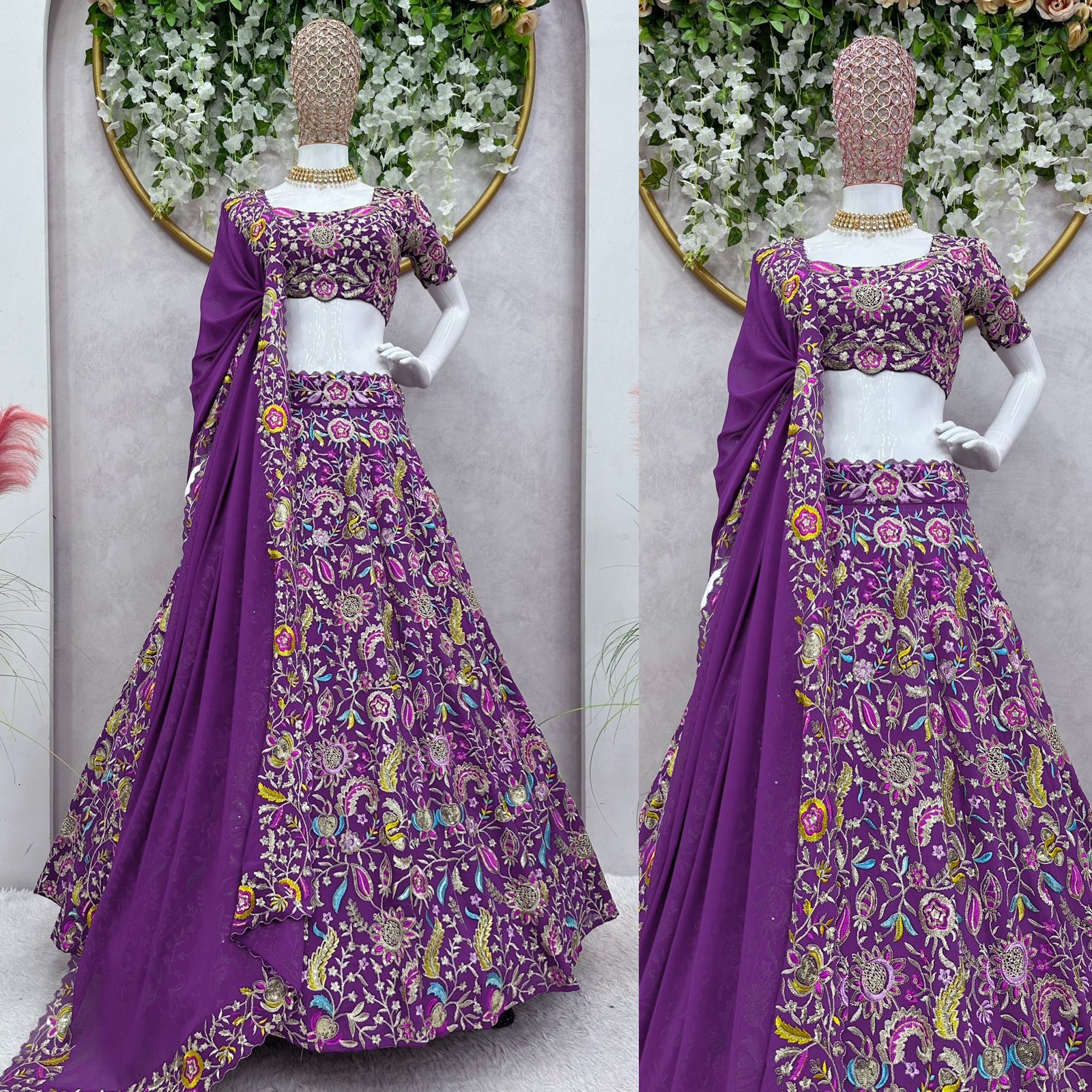 Discover the perfect addition to your wardrobe with our Indian Designer Purple Lehenga Choli. Shop online at Joshindia for a stunning and unique piece that will elevate your style. Embrace the vibrant colors and intricate designs of Indian fashion while enjoying the convenience of online shopping.