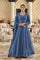Blue Heavy Faux Georgette With Embroidery Work Long Top, Heavy Shantoon Silk Material Bottom, Heavy Naznin Shiffon With Swarovski Diamonds & Ready Lace Dupatta
