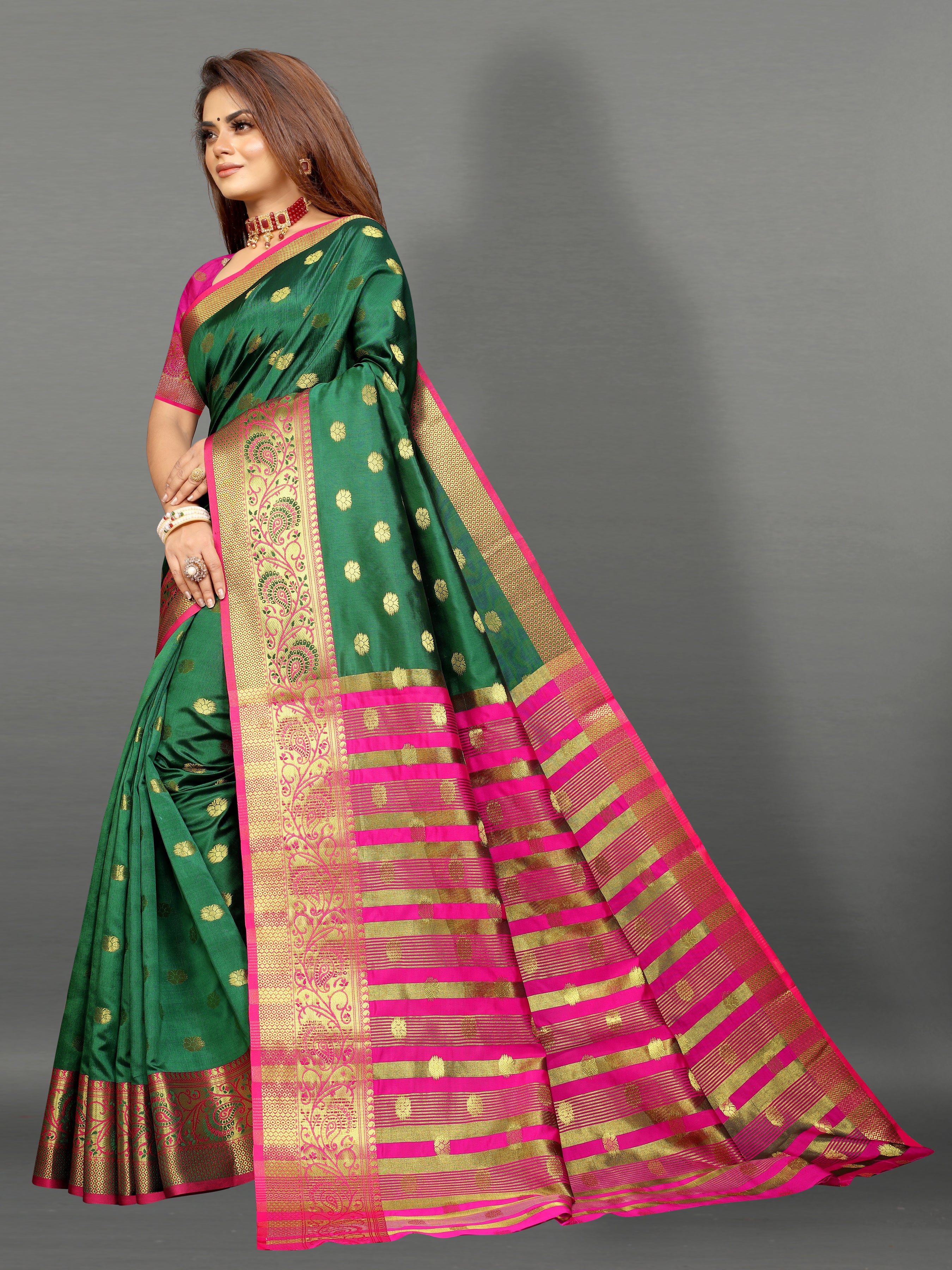 Pink and Green color banarasi silk saree - Joshindia