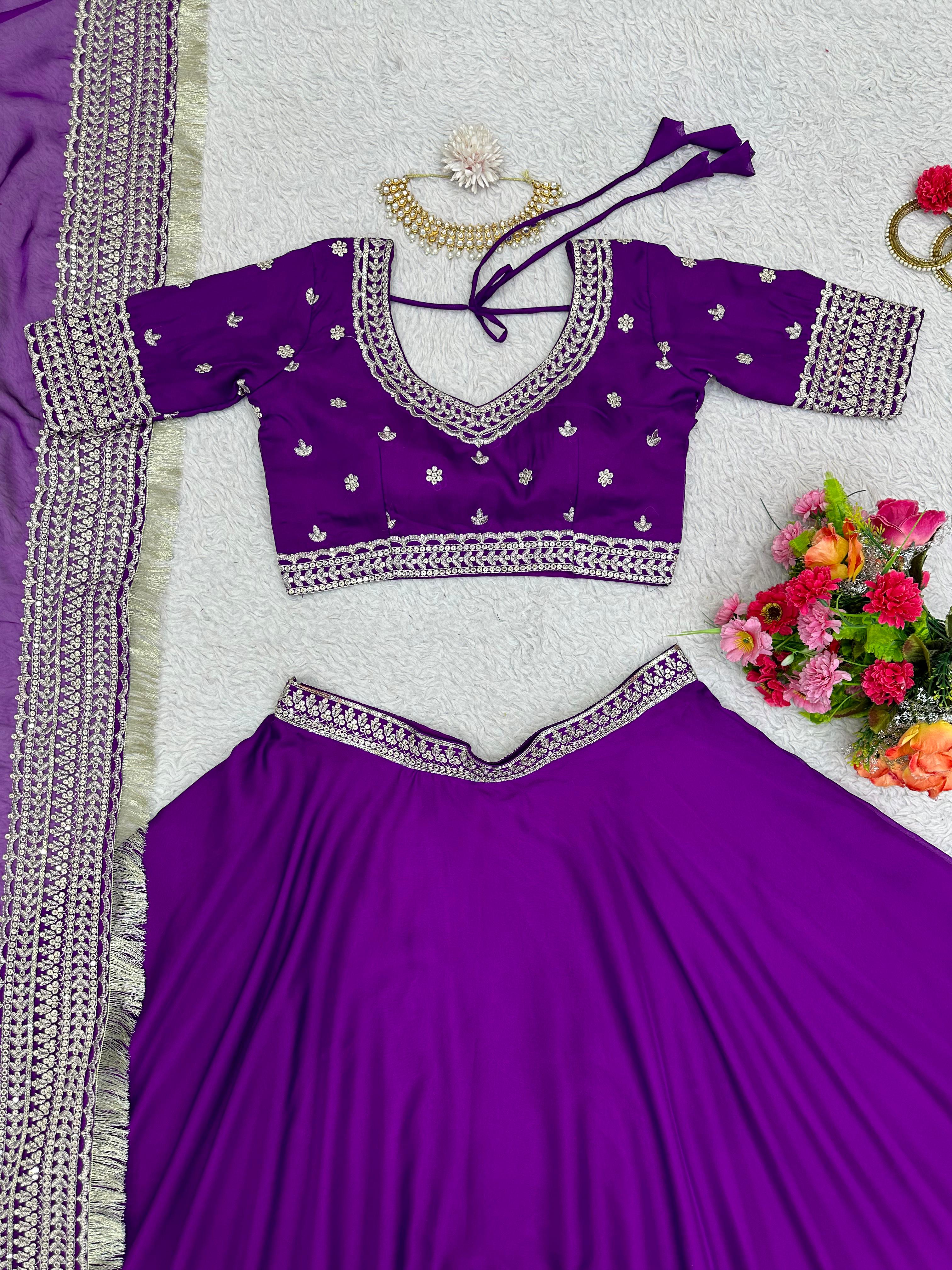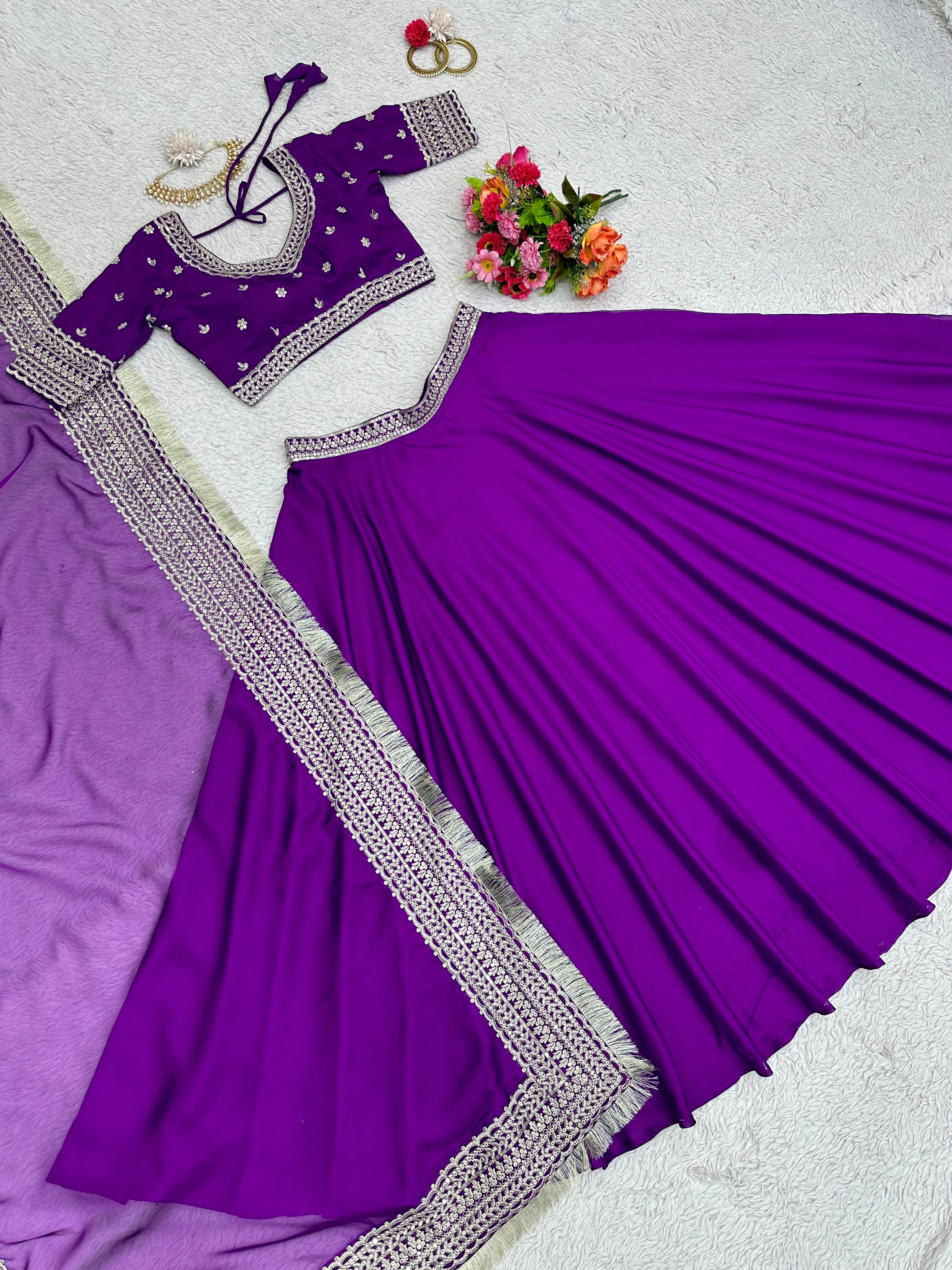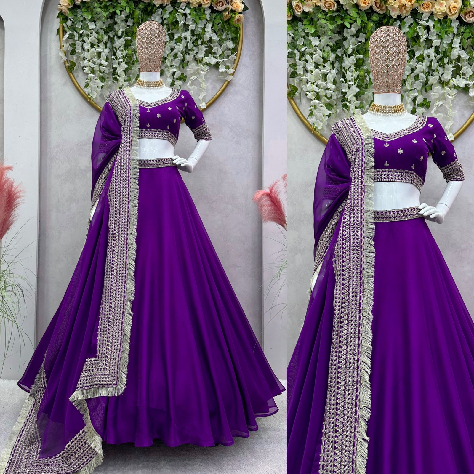 Purple Organza Lehenga With A Heavy Blouse And Dupatta