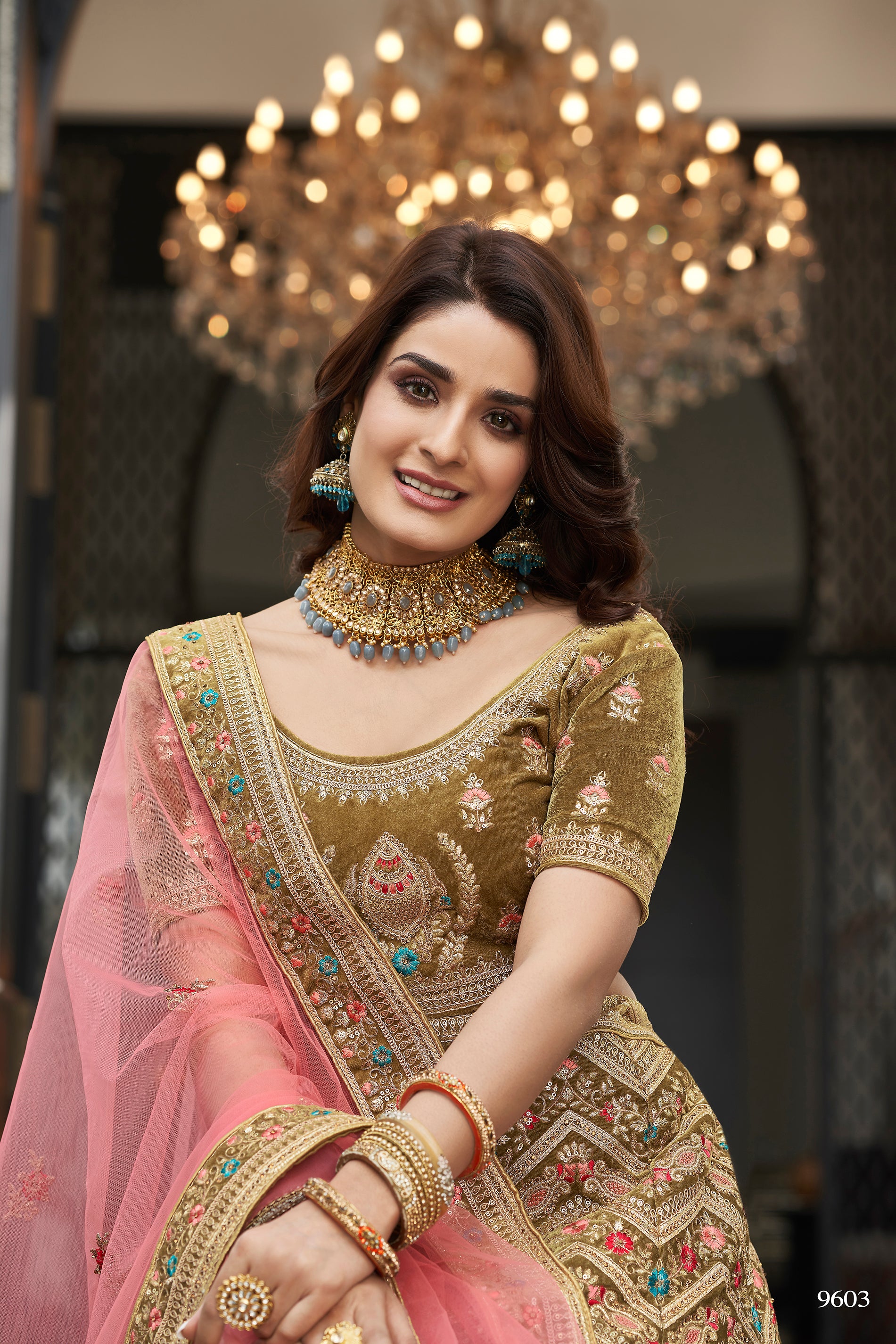 Trendy Olive Green Velvet Lehenga Choli Buy Now