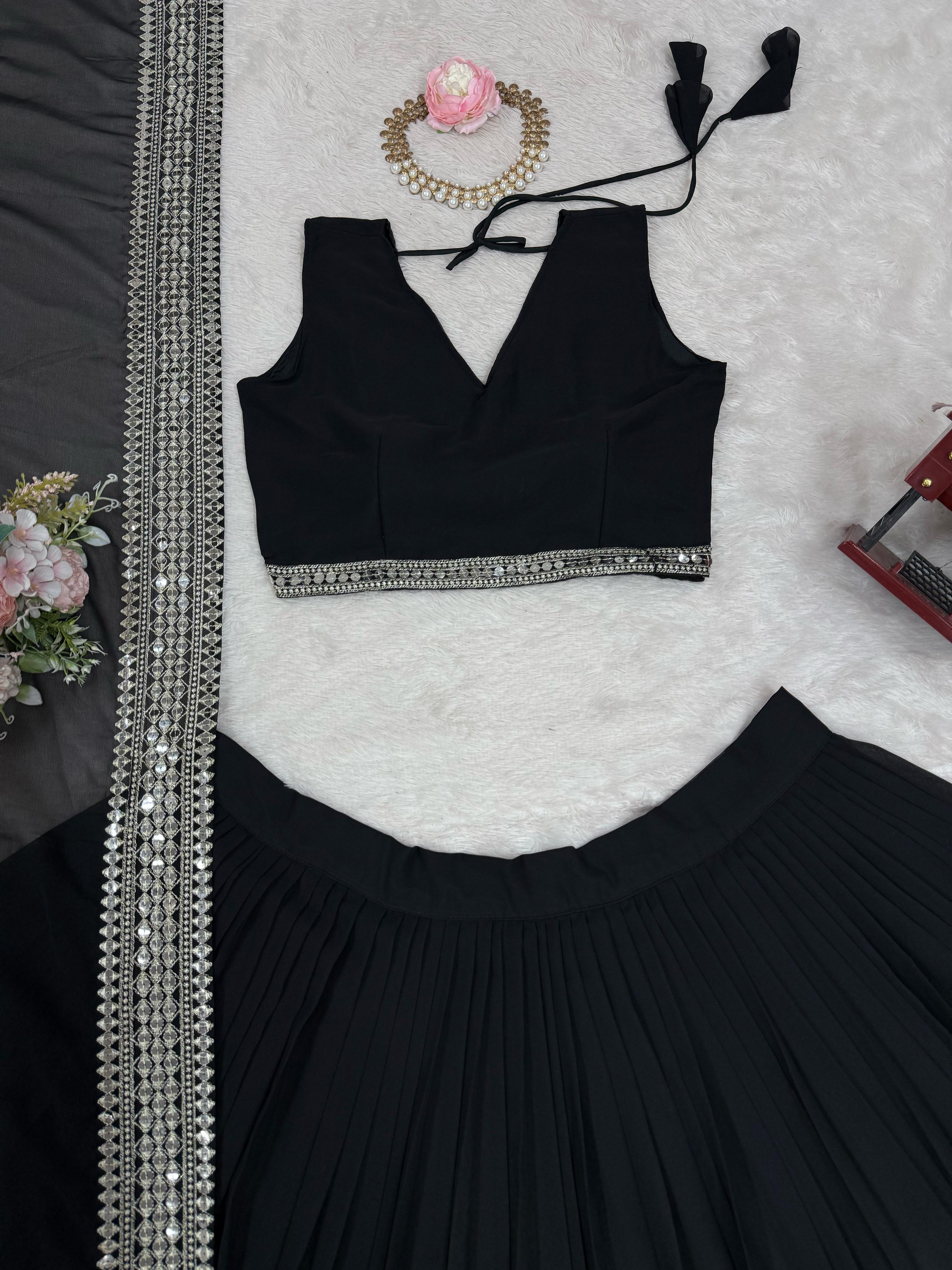 Black Color Georgette Silver Work Designer Lehenga Choli