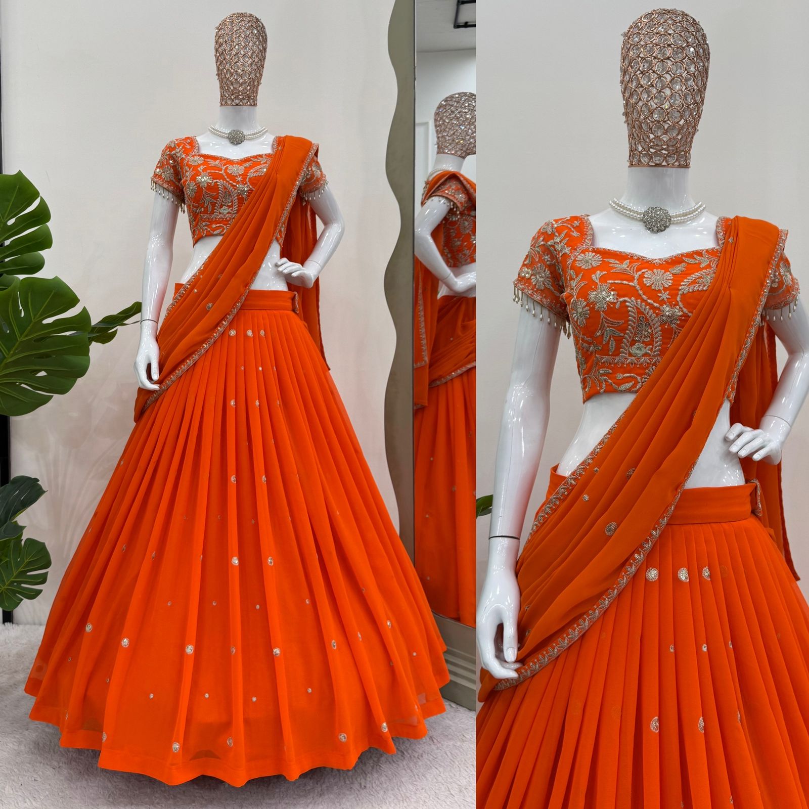 Designer Orange Color Ready To Wear Lehenga Saree