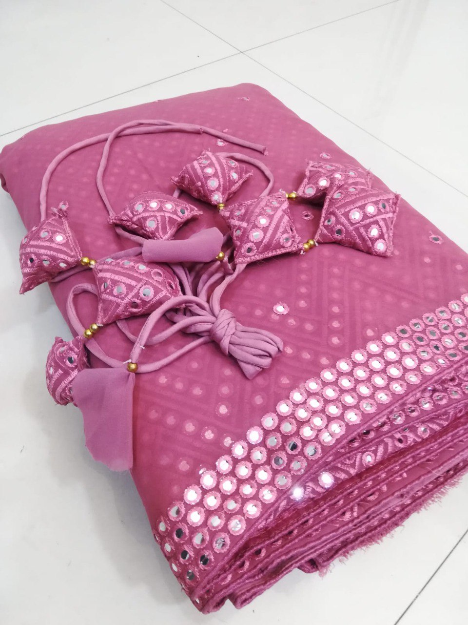 WORK: - 9MM SEQUINS WITH THREAD EMBROIDERY LACE BORDER WORK.