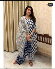 Latest Beautiful Cotton Printed Kurti with pant with Dupatta