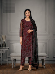 Maroon Color Women Soft Net Embroidery Work Straight Salwar Suit