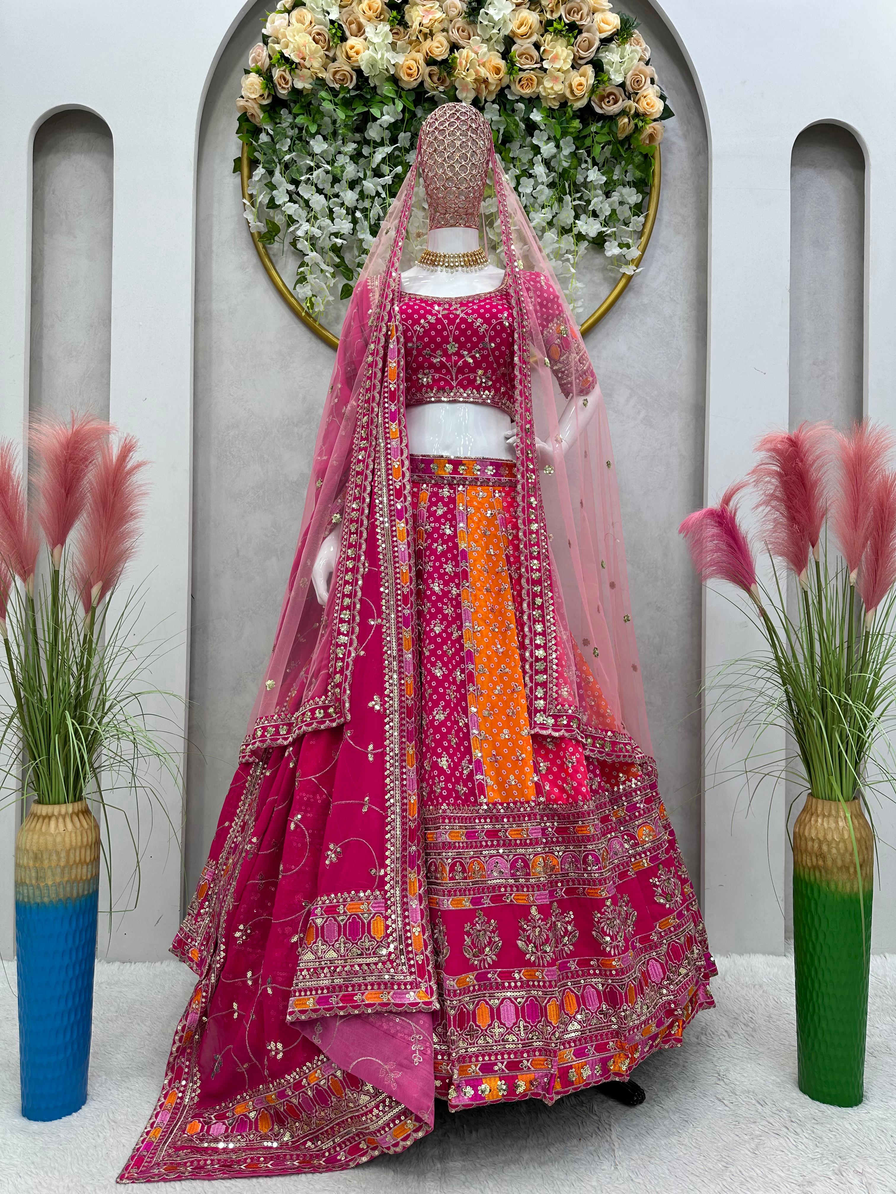 Pink and Orange Color Royal Style Lehenga Choli