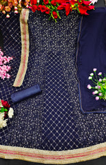 Heavy Bluming Georgette With Embroidery + Siqunce Work